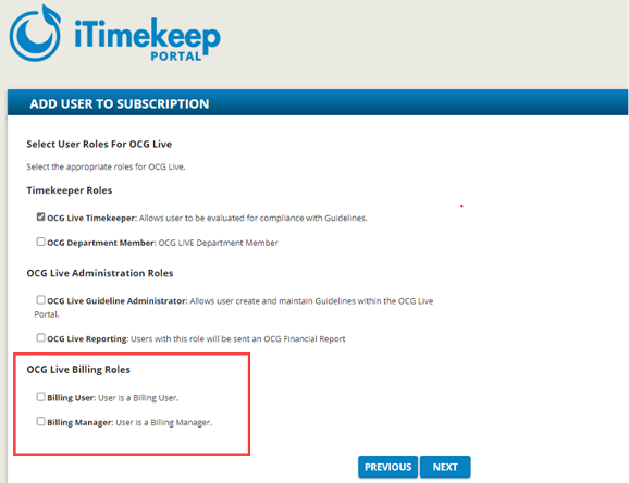 - No two users are alike; a Billing Manager has a vastly different set of needs than a Timekeeper. In OCG Live, users should only be permitted to access the information necessary to effectively perform their duties.